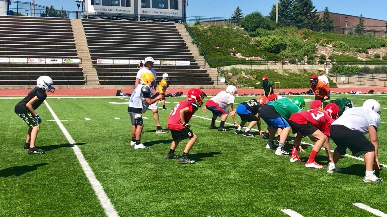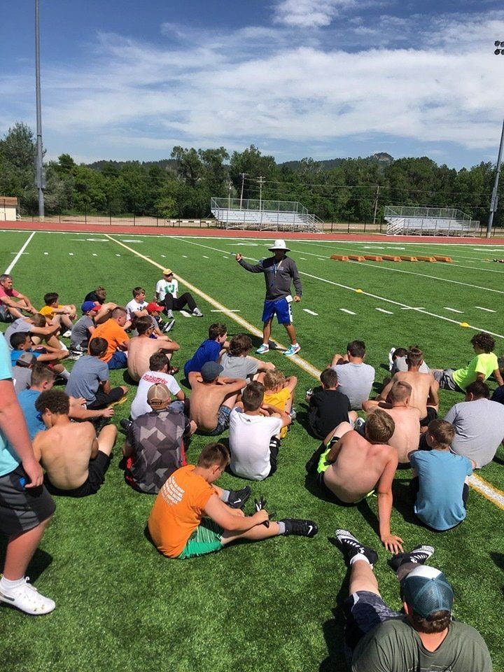 During the Black Hills Camp, Coaches and Football Campers, ranging from middle school to High school, met on the Lyle Hare Stadium Field. Despite the hot summer weather, they gathered together under the rally cry "Let's Go!" and continuously gave their all as individuals and teams.