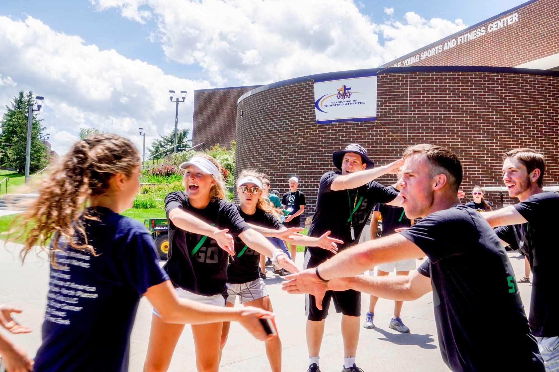 At FCA Camp, Campers were united together in sport huddles with new teammates. Each Huddle was led by a college Christian athlete(s) who has a passion for Jesus, sports and being leaders. These groups ate meals and worshiped together. Also, they intensely competed and trained together during their time at Camp.